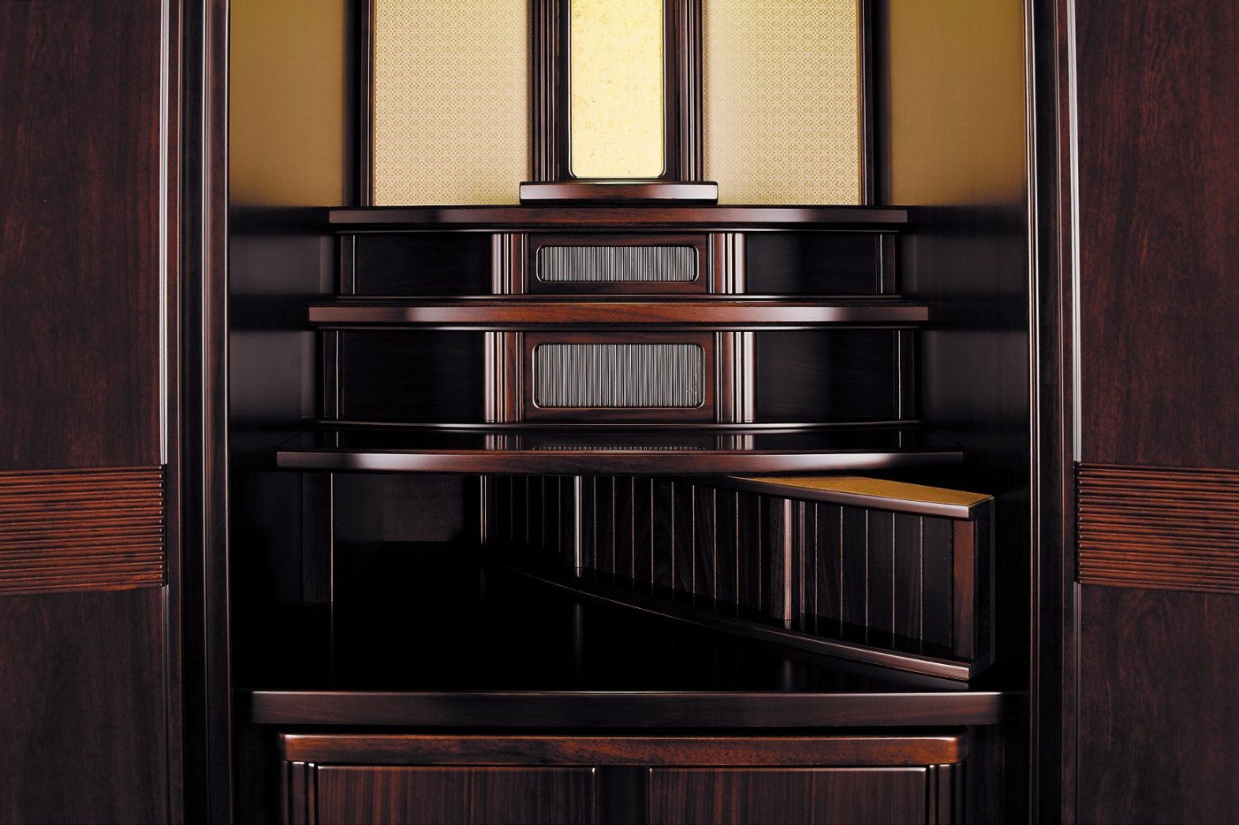 高さは低めの120cmですが、床に直接設置し、正座してお祀りするのに最適です。目線の高さや使い勝手を追求して開口部を大きくした祀り映えのするお仏壇です。