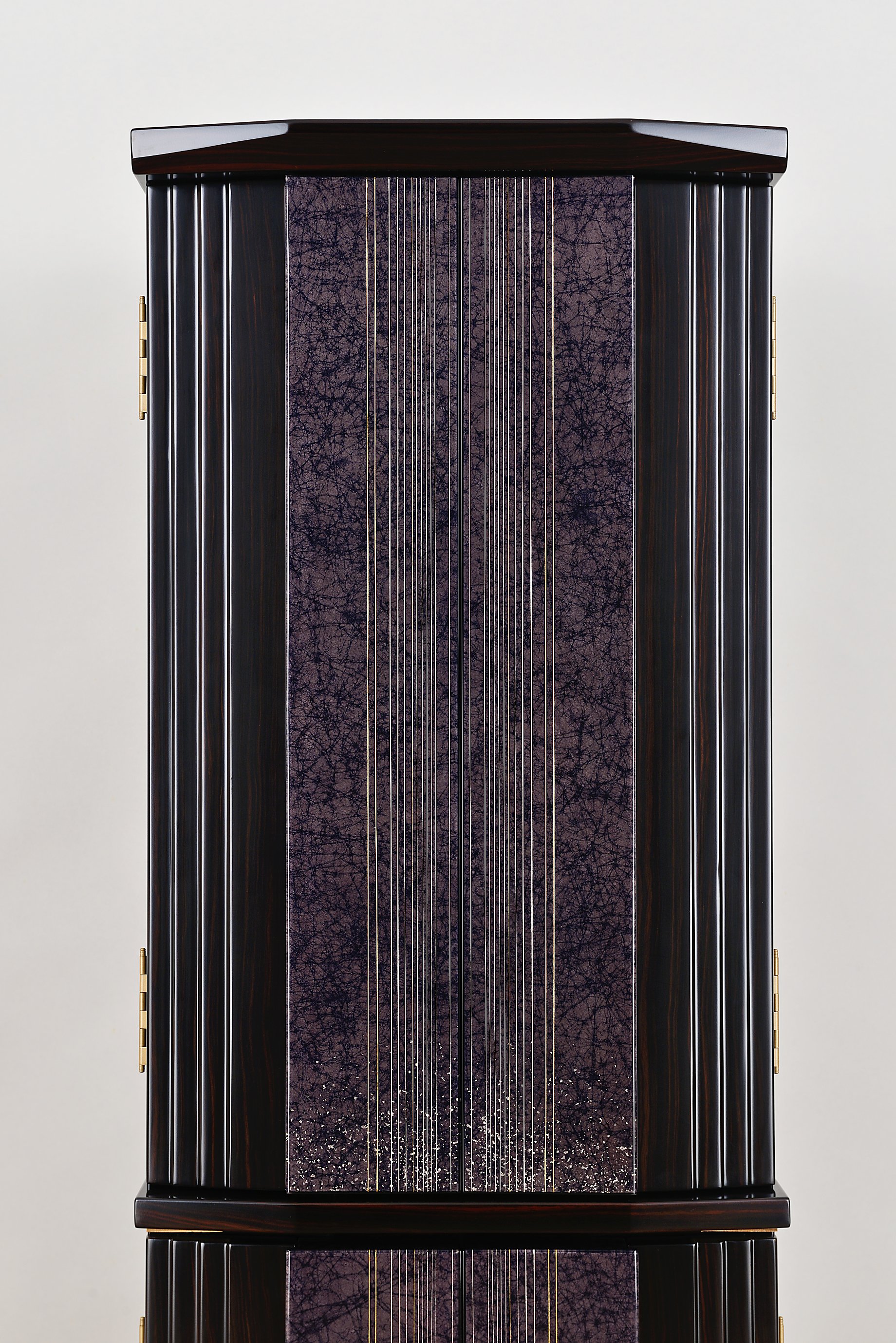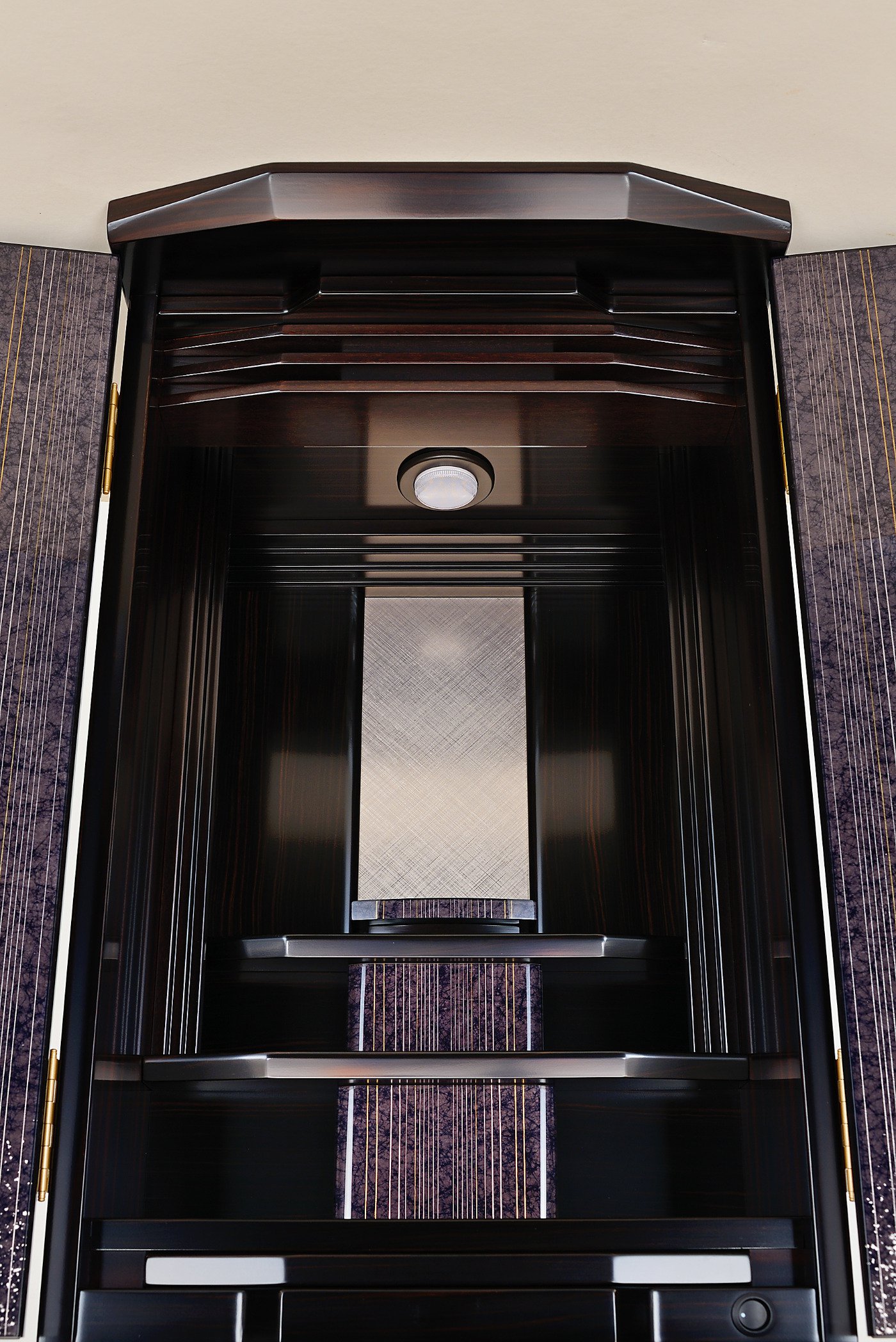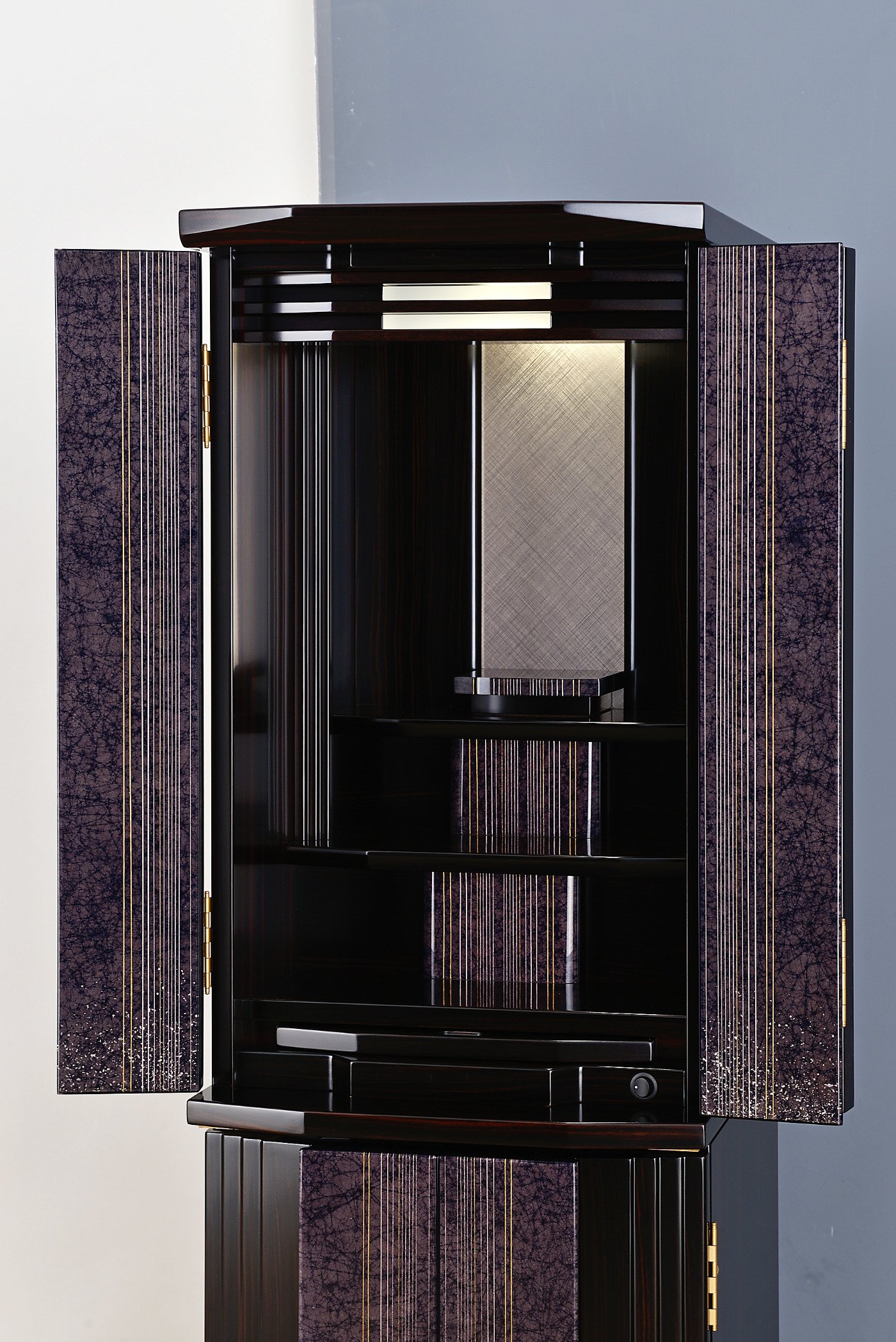 | 正面表面材 | 本黒檀 (台輪)薄板 (戸板)薄板 (中央)和紙貼り みかげ塗 |