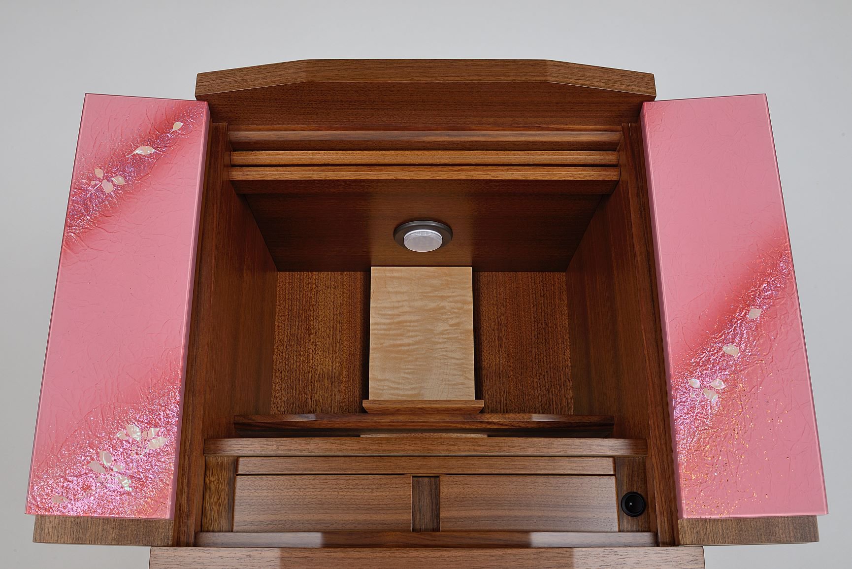 | 正面表面材 | ウォールナット (台輪)薄板 (戸板)薄板 (中央)和紙貼り みかげ塗 |