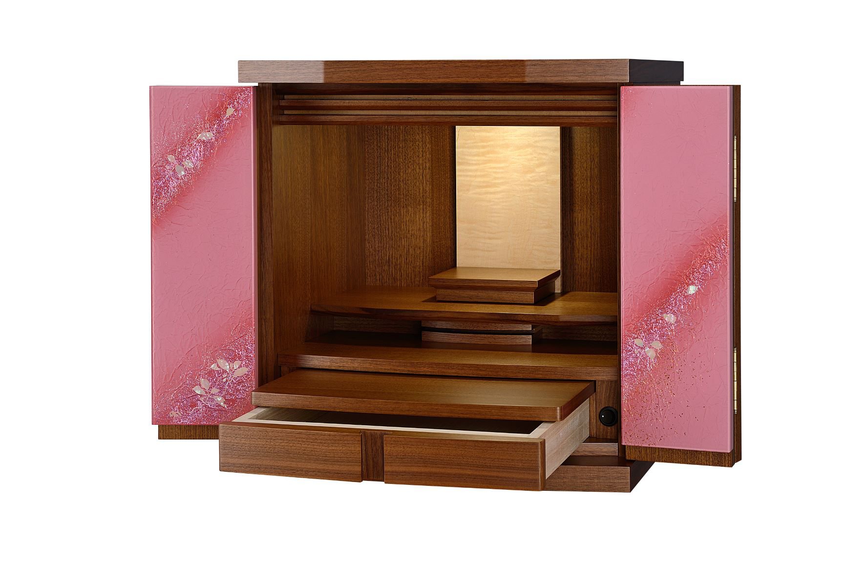 人気のウォールナットをベースにしたワイドタイプです。扉中央のみかげ塗りが美しさを際立たせます。