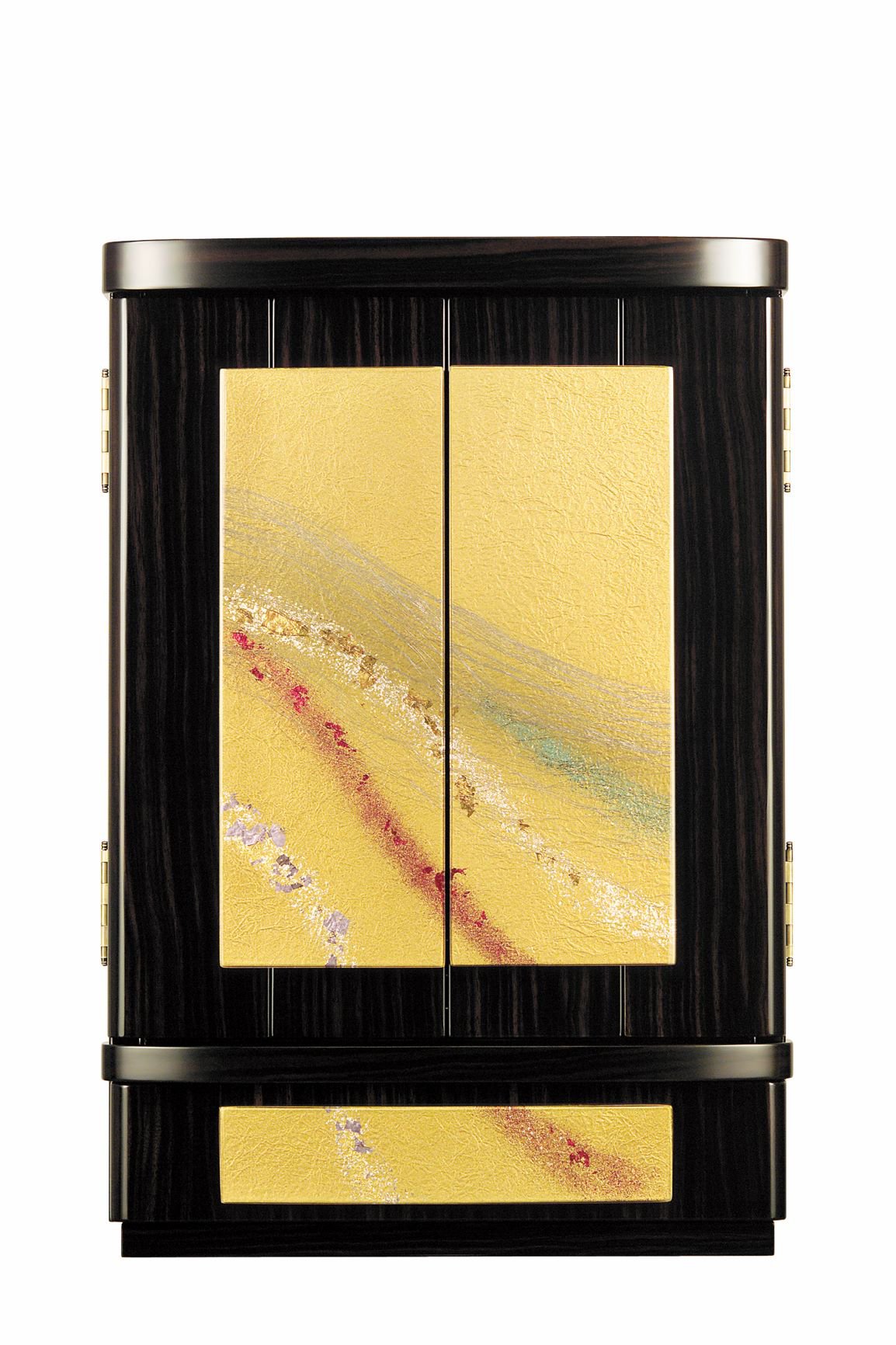 | 正面表面材 | 本黒檀 (台輪)薄板 (戸板)薄板 中央:和紙貼り(みかげ塗り) |