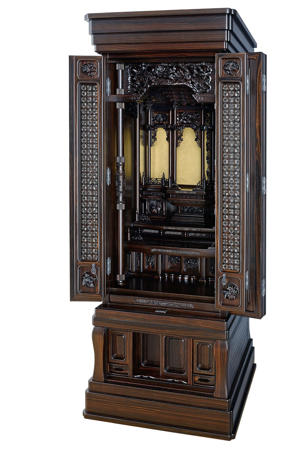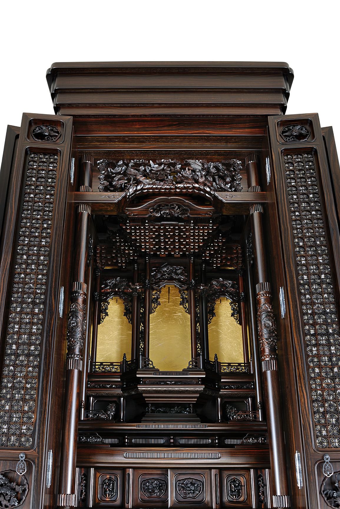 40年以上お仏壇製作に携わり、培った感性と技術力で造り上げた伝統的唐木仏壇の粋を集めた傑作です。