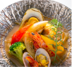 | 鍋物 | お選びいただけます 〈G〉鯛のしゃぶしゃぶ ポン酢を添えて 〈H〉海の幸のブイヤベース 〈I〉鴨とつくねの味噌鍋仕立て |