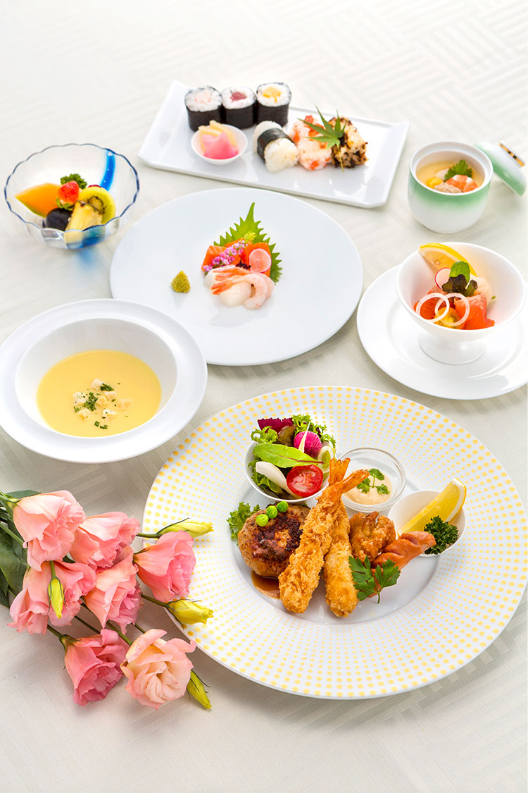 | 洋皿 | エビフライ、 若鶏からあげ、 ハンバーグ、 ソーセージ、 タルタルソース、 レモン |