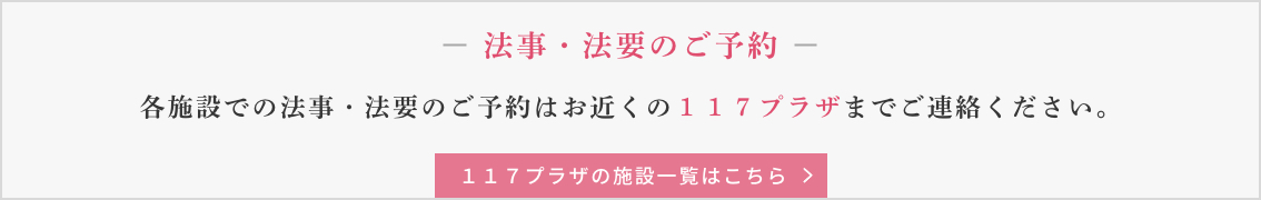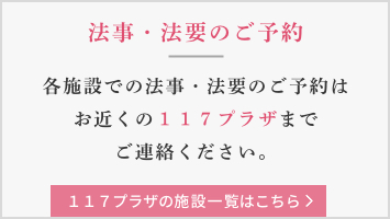 法事(法要・法宴)でご利用いただける厳粛で落ち着いた会場をご用意しております117プラザ以外の施設利用も承ります