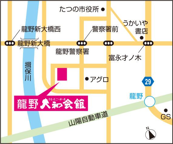 「龍野」インターより西へ約3分(たつの警察署南側)
