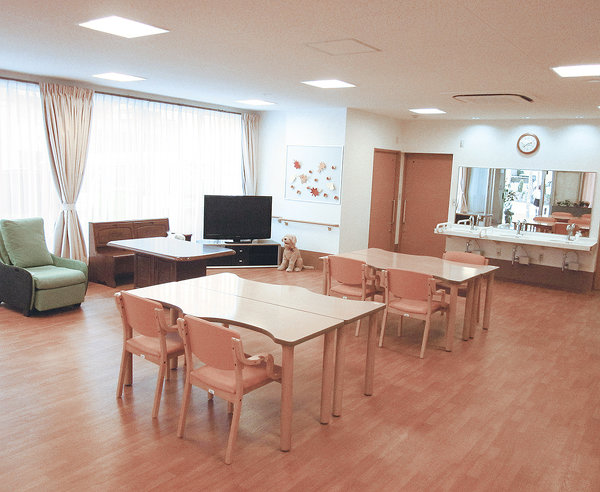 光が降り注ぐ明るいデイルーム。