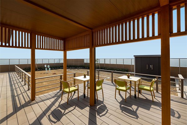 中庭や天窓から自然の光が降り注ぐ明るいデイルーム。たくさんの笑顔が集います。