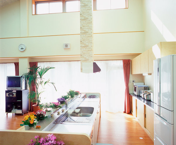 対面型の広々としたスペースのキッチン。