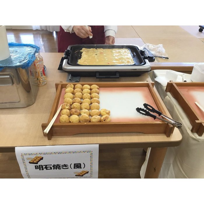 一般のお客様が来所され、利用者様と一緒にお刺身や焼きたての明石焼きなどバイキング形式の昼食を楽しんでいただきました。