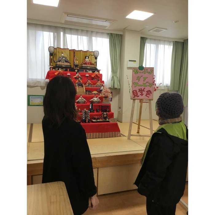 地域の方は、七段飾りのお雛様を楽しまれたり、大人の学校にも挑戦してくださりデイの様子を知って頂きました。