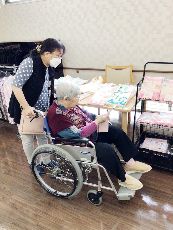 当日は、多くの入居者様とご家族様にご参加いただき、洋服や靴などを一緒に選ばれる姿が見られ普段の施設生活とは異なる華やいだ雰囲気の中で、笑顔あふれるひとときとなりました。
