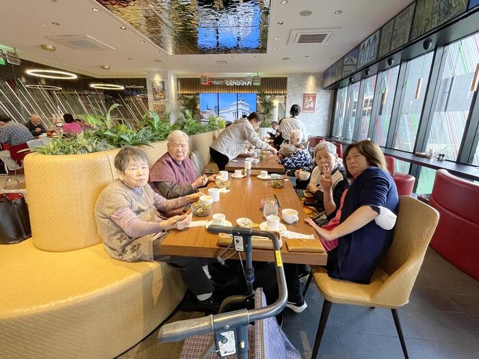 11月14日にグループホーム広畑・みつ合同のお食事ツアーを実施しました。 入居者様16名・ご家族様10名・職員9名の合計35名が参加され、当日はお天気にも恵まれ、ぽかぽかとした温かい陽気の中、姫路テラッソ内の「リコルド」へ出かけました。 コース料理を味わいながら、皆様会話も弾み、和やかなひとときを過ごされました。 また、お店からは姫路城が一望でき、久しぶりの姫路城に喜ばれていました。