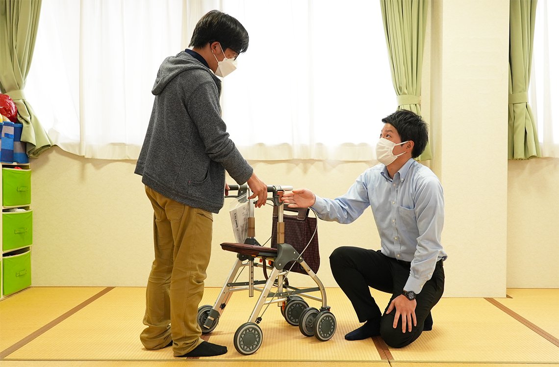 (長男様より)ベッド上での入院生活を送っていましたが、入所後は歩行器使用し安定して歩行することができ、よかったです。