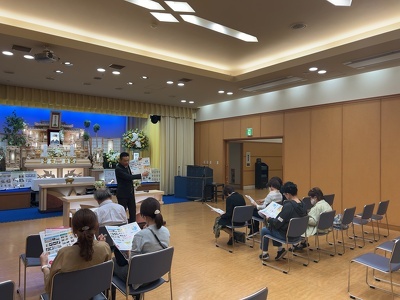昨今の家族葬の事情や様々なお葬儀事情について会館支配人よりお話をいただきました。