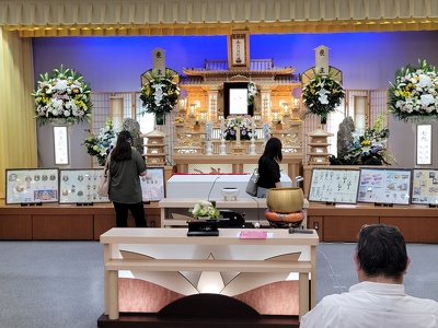 館内では、家族葬や親族葬など少人数のお葬式にご利用して頂ける祭壇を展示し、ホールや親族室など、個別対応でゆっくりとご案内させていただきました。