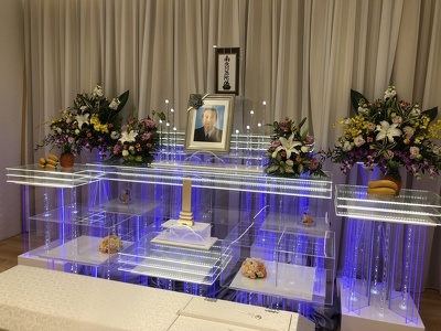 紀三井寺やわらぎホール専用のクリスタル祭壇はお客様から大変好評でした。