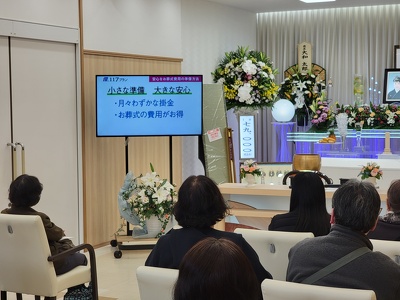 皆様には家族葬や117プランの説明をさせていただき、また新商品のみどり命保険の案内を行ったところ、多数の方にお申込みいただけました。