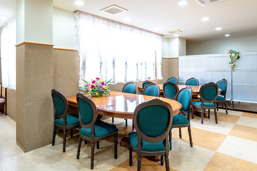 ※席数は最大席数です。少人数でもご利用いただける親族葬・家族葬対応ホールがあり、ご参列の人数にあわせた席数がご準備できます。