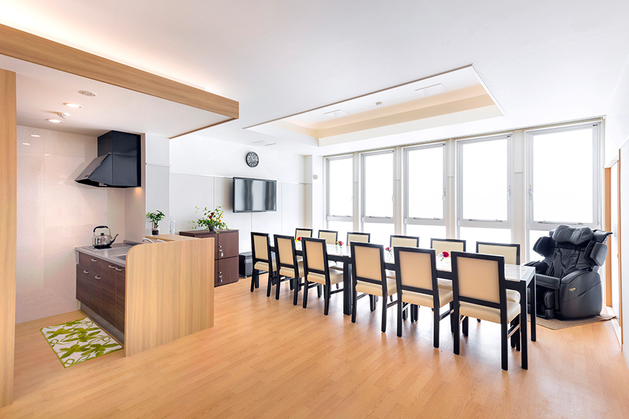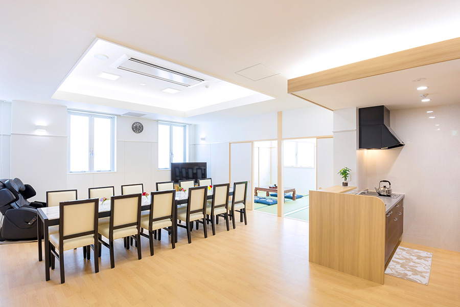 キッチンやソファーを備えたリビングダイニングで、自由にくつろいで頂けます。