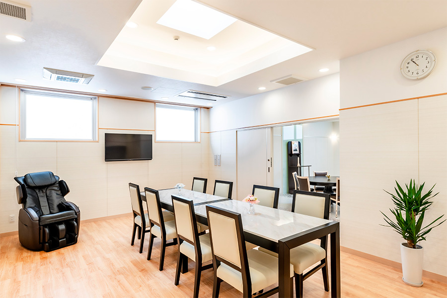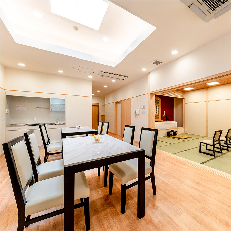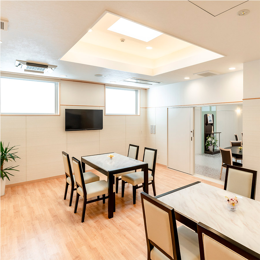 明るく快適な空間で、ご家族、ご親族、ご友人たちとゆっくり故人様をお見送りいただけます。