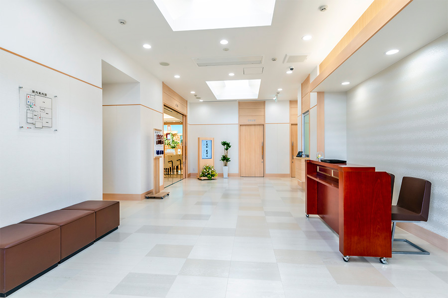 天井が高く明るく開放的なホール。