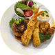 | 揚 物 | 天ぷら盛り合せ(海老、烏賊、さつま芋、獅子唐辛子)、天だしと大根卸し |