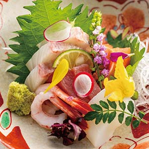 | 御造里 | 鯛、鮪、勘八、サーモン、烏賊、甘海老、あしらい一式 |