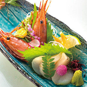 | 御造里 | 中トロ、鯛の平造り、烏賊の鞍掛け造り、有頭海老、あしらい一式 |