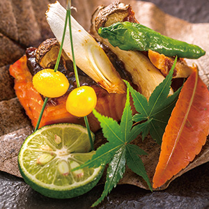 | 焼物 | 金目鯛の香り焼 酢橘をお好みで 菊蕪とはじかみを添えて |