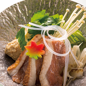 | 炊合せ | 海老含煮、高野豆腐・がんもどき、鴨団子、昆布巻、よもぎ麩 |
