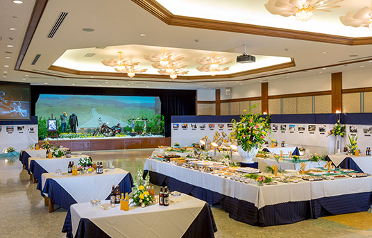 | お料理 | ブッフェ(立食または着席) 1名様:3,850円/4,950円/6,050円 ※コース料理でのご利用も承っております。詳細はお問い合わせください。 |