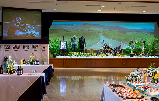 故人様が歩んで来られた人生を、数々の写真を展示して在りし日を懐かしんでいただけるコーナーをご用意。一緒に過ごした時代にタイムスリップして想い出を一つひとつ紐解いていただける場となります。