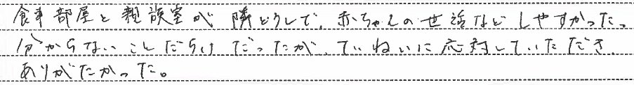 食事部屋と親族室が隣どうしで、赤ちゃんの世話などしやすかった。