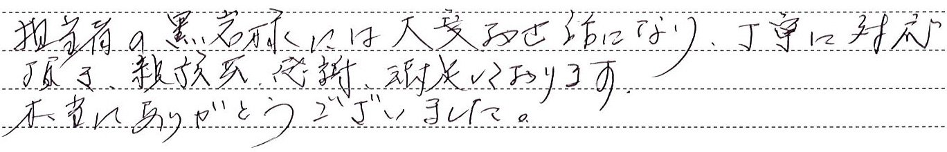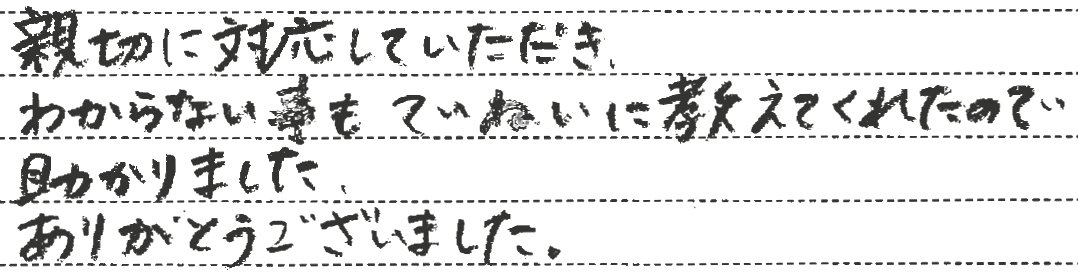 ていねいで心のこもった対応をしてくださったと感謝しております。