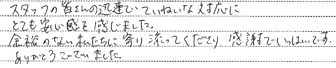 スタッフの皆さんの迅速でていねいな対応にとても安心感を感じました。