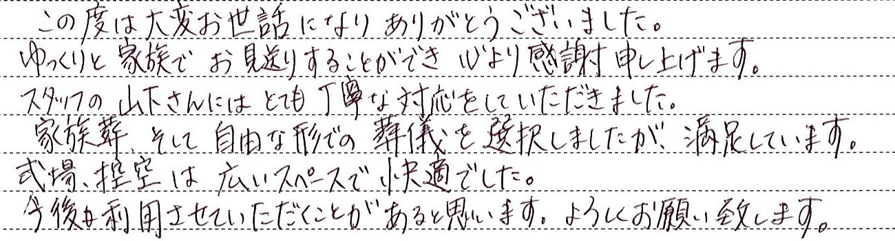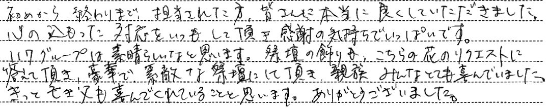 ゆっくりと家族でお見送りすることができ、心より感謝申し上げます。