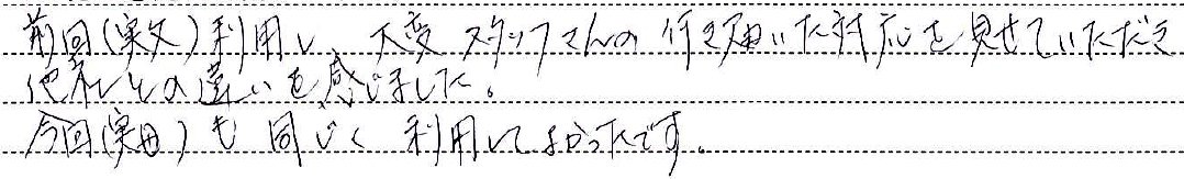前回(実父)利用し、大変スタッフさんの行き届いた対応を見せていただき他社との違いを感じました。