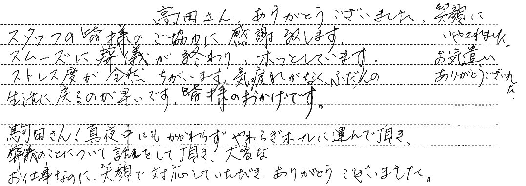 参列者皆が本当に納得して終えることができました。