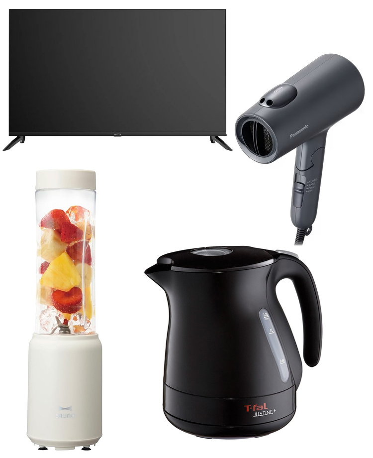 ・T-FAL 電気ケトル ・BRUNO ブレンダーボトル |