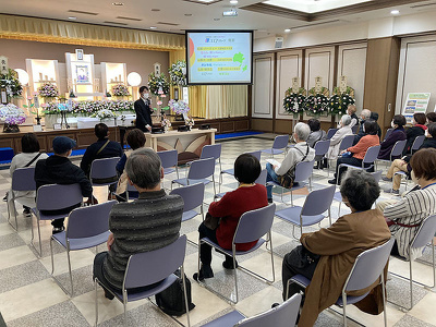 セミナーでは、家族葬の現状やさまざまなご葬儀のかたち、今と昔ではどのように変わってきたかなど、よく頂くご質問をパワーポイントでご紹介させて頂きました。