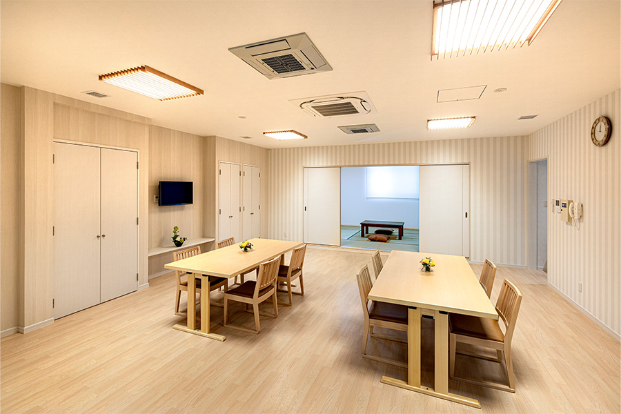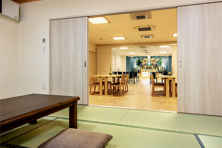 親族室は、和室・食事室やバスルーム、トイレを備え、まるでご自宅のような雰囲気でゆったりとした時間をお過ごしいただけます。