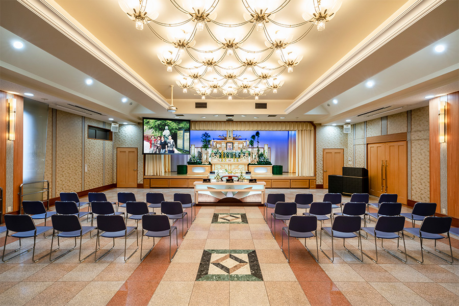 ※席数は最大席数です。少人数でもご利用いただける親族葬・家族葬対応ホールがあり、ご参列の人数にあわせた席数がご準備できます。