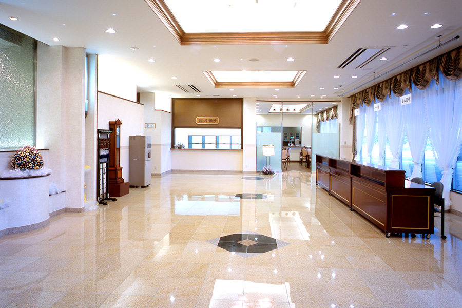 天井が高く明るく開放的なホール。ゆったりとお過ごしいただける親族室。