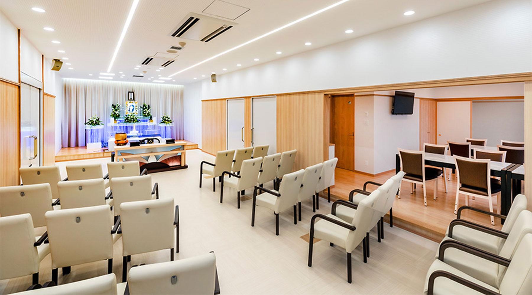 付き添い安置とは、ご遺族様が故人様といつでも対面できる部屋での安置のことです。 直葬プラン、火葬式プランの場合、付き添い安置はご利用いただけません。 付き添い安置をご希望される場合は、一日葬プラン、家族葬プランをお選びください。 ※一日葬プラン、家族葬プランには付き添い安置(3日以内)がプランに含まれています。