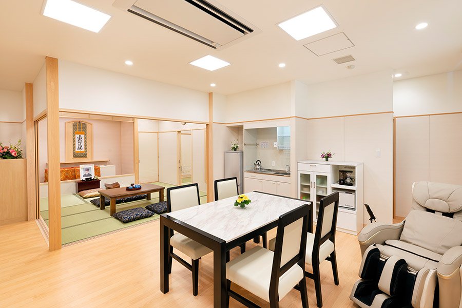 ご自宅のような雰囲気でゆっくりとお別れがしたいとお考えの方には、親族室でご葬儀を執り行うこともできます。各親族室には和室、食事室、ご遺族仮眠室やバスルーム、トイレも備えてあり、ゆったりとお過ごしいただけます。ご遺族の皆様の大切な想いを取り入れた、さまざまなご葬儀を真ごころを込めてお手伝いさせていただきます。