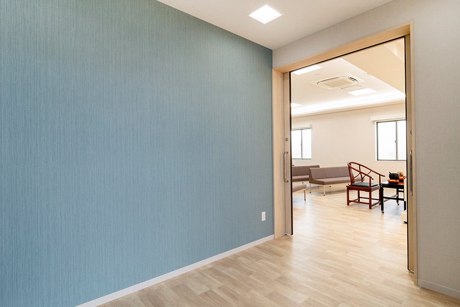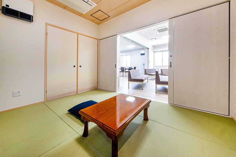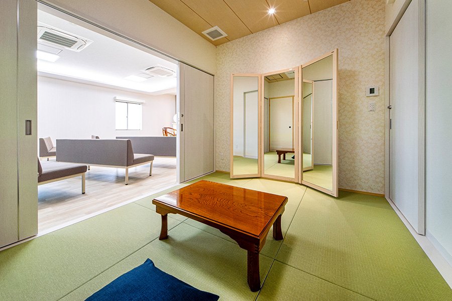 ご自宅のような雰囲気でゆっくりとお別れがしたいとお考えの方には、親族室でご葬儀を執り行うこともできます。各親族室には和室、食事室、ご遺族仮眠室やバスルーム、トイレも備えてあり、ゆったりとお過ごしいただけます。ご遺族の皆様の大切な想いを取り入れた、さまざまなご葬儀を真ごころを込めてお手伝いさせていただきます。