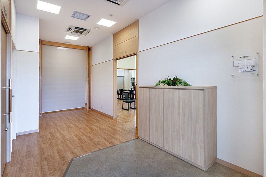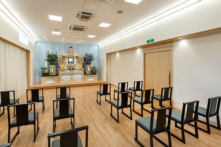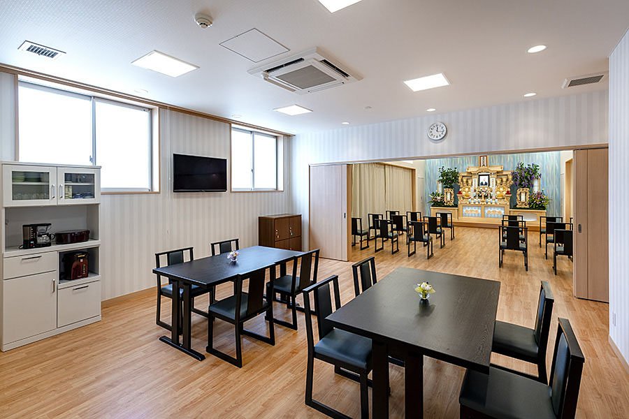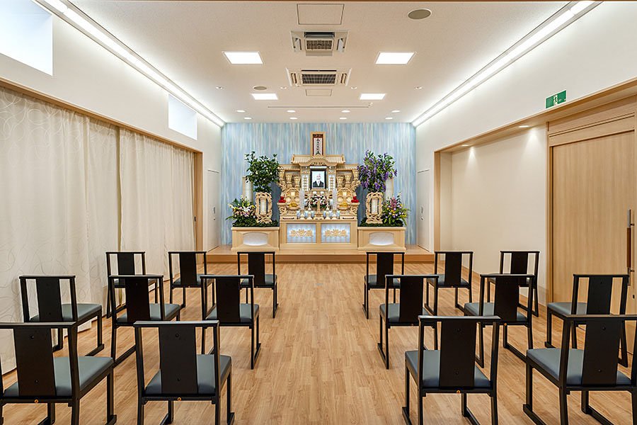 家族や近しい親族、気心知れた方々だけで執り行う家族葬専用ホール。式場と親族室はひとつづきで全面バリアフリー対応の一式場の貸切会館です。