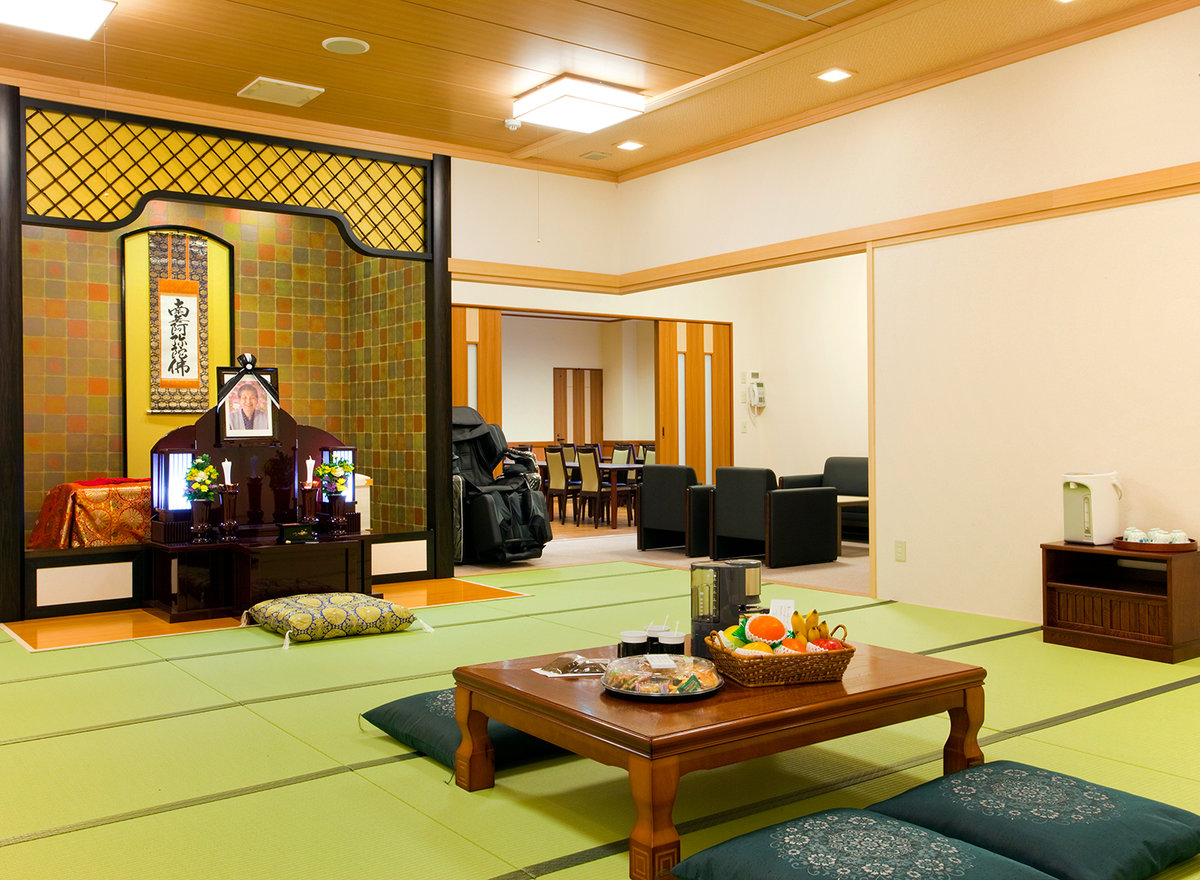 ご自宅のような雰囲気でゆっくりとお別れがしたいとお考えの方には、親族室でご葬儀を執り行うこともできます。各親族室には和室、食事室、ご遺族仮眠室やバスルーム、トイレも備えてあり、ゆったりとお過ごしいただけます。ご遺族の皆様の大切な想いを取り入れた、さまざまなご葬儀を真ごころを込めてお手伝いさせていただきます。