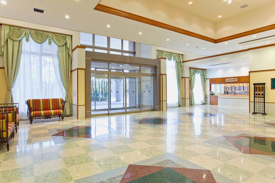 天井が高く明るく開放的なホール。ゆったりとお過ごしいただける親族室。